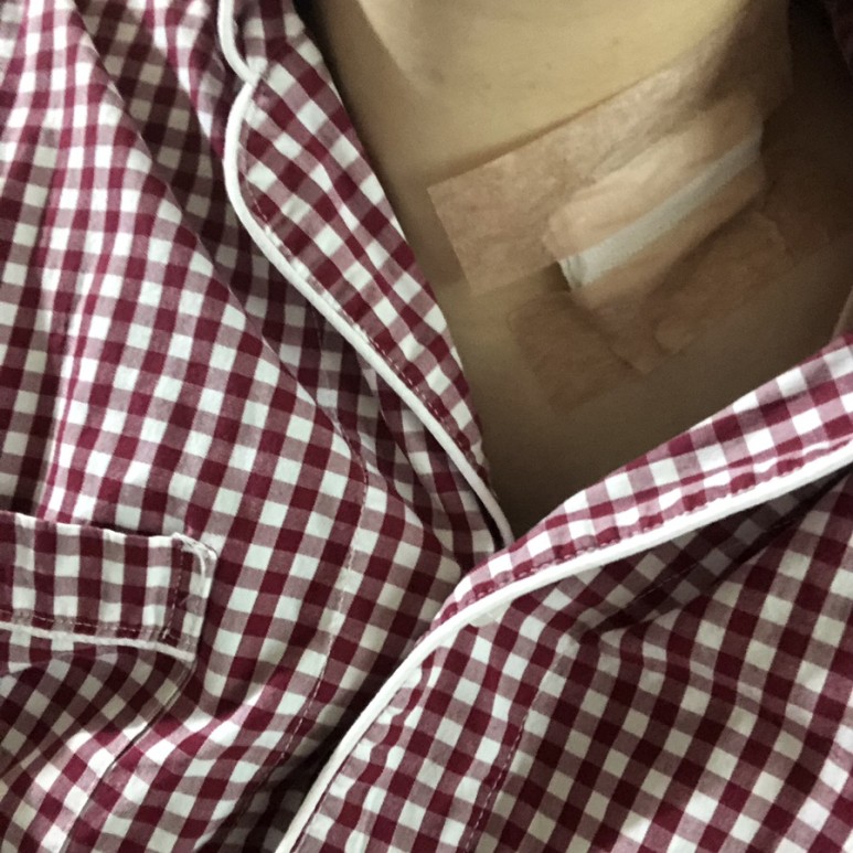 퇴원할때 드레싱과 피부색 밴드를 달아줬는데 잊어버리고 사진을 찍지 않았어!!!
