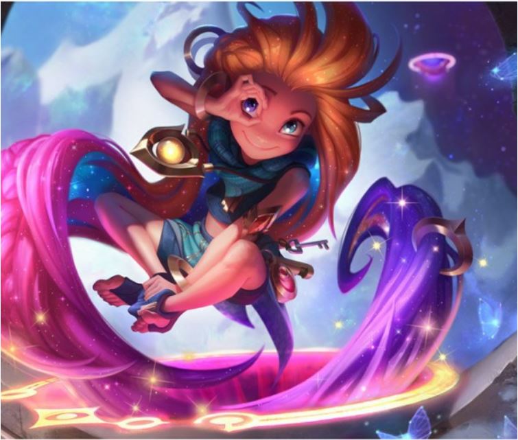 Q 스킬 조이가 이동 거리가 길어질수록 더 큰 피해를 주는 별을 발사합니다.가장 먼저 적중한 적은 마법의 피해를 입고 적중한 대상 근처의 적은 80%의 피해를 입습니다.