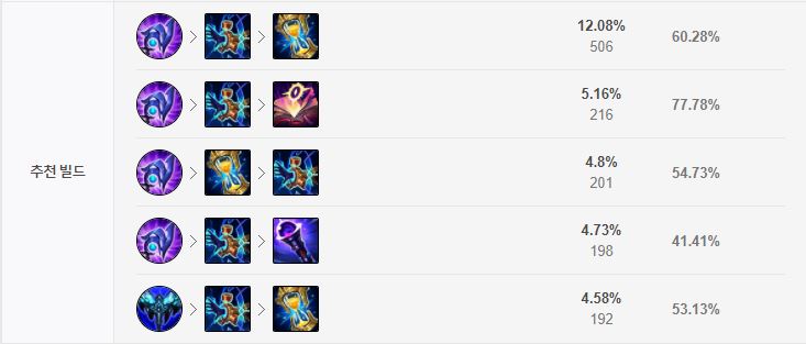 1코어 : 루덴 폭풍(3400골드) 스킬로 피해를 입히면 대상과 주변 3명의 적에게 100+주문력의 10%에 해당하는 마법 피해를 추가로 주고 2초간 이동 속도가 15% 상승합니다.