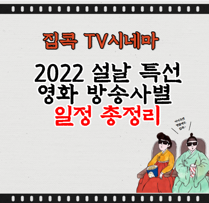 안녕하세요. 까치 설날은~어제입니다.우리의 설날은~오늘이래요.<ww모두 새해 복 많이 받으세요!!>설은 1월 하루이지만 설도 있어서 설 인사를 2회는 느낌은. 기분 탓이겠죠?ww 그래도 여러분 이번 설 연휴가 좀 길어서 더 좋습니까?나는 뭔가 요즘 매일 바쁘게 보내고 있으니깐 설 연휴가 길것이 좋은지 안 좋은지도 모릅니다. 아무튼 어디 가는 분들은 오랜만에 외출에 평소 그다지 만나지 못한 친척들까지 보고 오면 더 기분 좋은 시간을 보내고 올 수 있을 겁니다. 그것도 좋은 선택이었습니다. 최근 오미크론라고 난리잖아요. www. 나오지 않는 편이 나을지도 모릅니다:)그래서 저는 오늘 2022년 설 연휴, 만약 집에 계신 분 때문에 설날 특선 영화 TV편성표를 한번 올린다고 생각합니다!전에 추석 특선 영화를 올린 때도 반응이 상당히 좋아서 이번에도 한번 올리고 보겠습니다. 웃음~