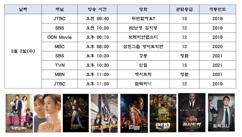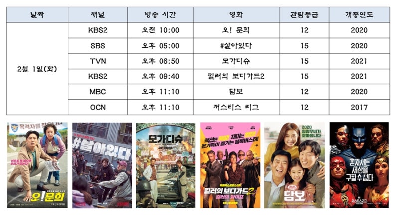 내가 더 빨리 정리했다고 하면 설 연휴 전체의 설날 특선 영화 TV편성표를 올렸는지도 모르는데 이번 설 연휴가 이렇게 빨리 돌아올 거라고는 생각하지 않았고, 미리 갖추지 못하고(웃음)결국 이번 설날 특선 영화는 2월 하루가 2월 2일 2일이 늘어날 것 없게 되었습니다. (울음) 그래도 설날은 오늘이고…내일까지 설 연휴라서…만일 집에 머물고 있는 분들은…. 아니면 이미 어디든지 가고 온 분들은 집에서 편하게 정리된 TV편성표를 보지 보고 싶었던 영화가 있으면 시간에 맞춰서에 볼 것도 좋다고 생각합니다!그럼 이번 설 연휴에는 어떤 설날 특선 영화를 보일지 함께 봅시다! +_+ww 2022년 설날 특선 영화(2월 1~2월 2일)TV편성표
