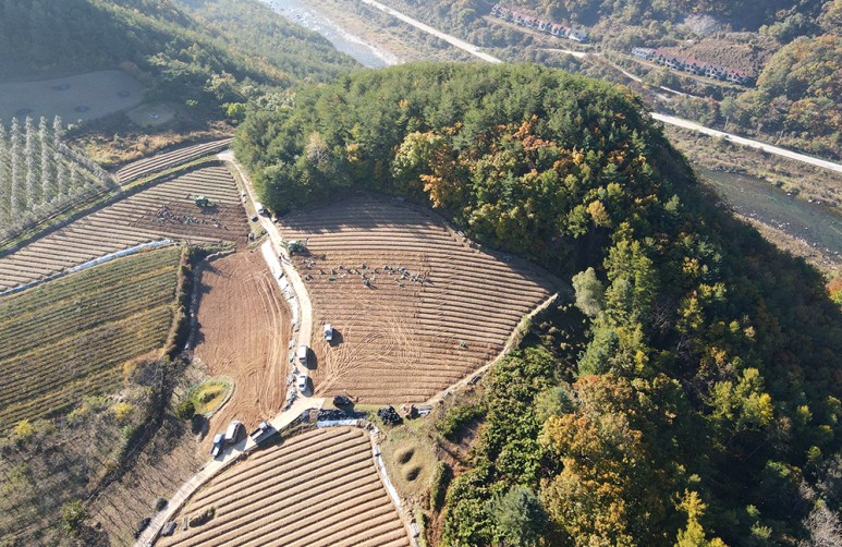 - 풍기애애한 홍삼을 만드는 인삼이 자라는 환경을 중요하게 생각합니다.6년이라는 긴 세월 어떤 땅에서 기른 인삼인지도 중요하지 않을까요? 아래 사진은 작년 가을 6년근 인삼 수확일에 제가 직접 드론을 찍은 인삼밭 환경입니다. 주위를 아무리 살펴봐도 오염의 여지는 찾을 수 없습니다. 인삼을 키운 땅은 인삼이 자라는 동안 지력을 다 써버리고 인삼을 수확하면 그 땅은 인삼은 물론 다른 작물도 자라지 않습니다. 그 뿌리의 식물이 자라는 환경땅은 정말 중요하지 않을까요?