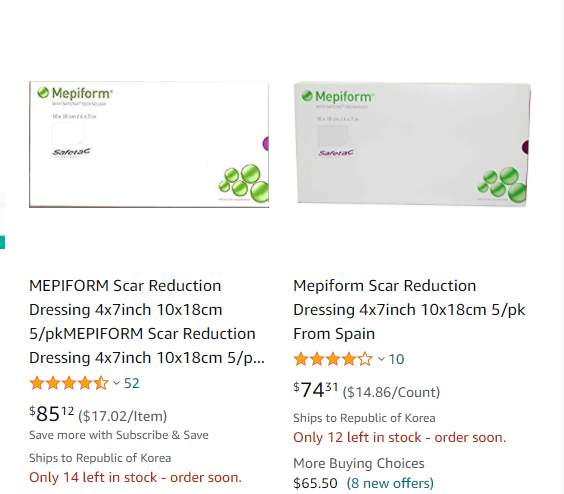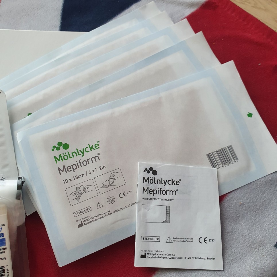 메피폼은 대략 3, 4일? 좀 더 오래 쓰시는 분들이 계실 텐데 벗기는 것 같아요.샤워할 때만 빼고 다시 붙여주세요.그리고 이것은 데일리용으로 자외선 차단을 위해 낮에는 메피폼을 사용합니다. 그래도 차단할 수 있는 게 아니라 그 위에 밴드를 붙이는 분들도 있거나 옷을 더 입고 숨기는 것도 좋다고 들었어요 🙂 – 메피폼은 카페에서 이것도 소분하시는 분들도 있고 아마존 직구 1주일~ 늦으면 2주 기다려주실 수 있어요.국내에서는 거의 1 장당 8만원 병원이라도 그 정도이기 때문에 비쌉니다.(실비가 되면 다행이지만 청구하지 못할 경우가 있어 꼭 알아보면 좋을 것 같습니다)