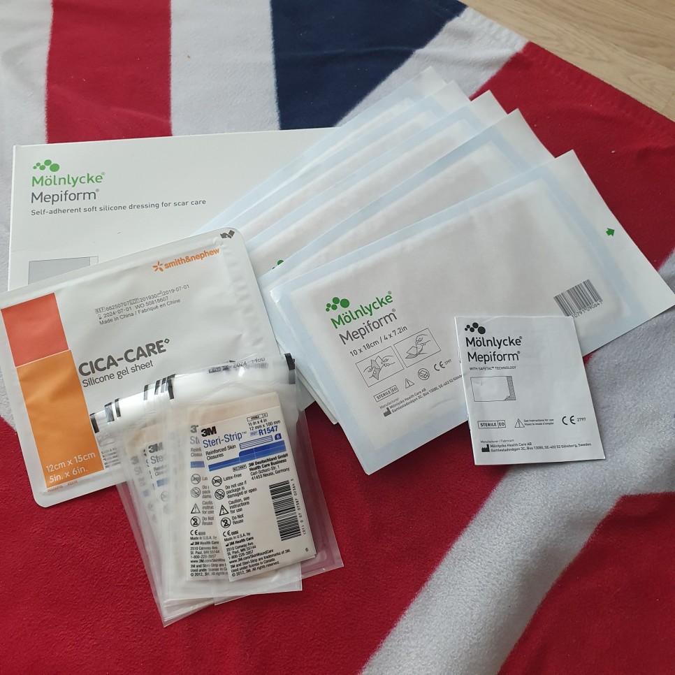 우선 메피폼과 시카케어는 제가 알고 있는 지식으로는 켈로이드와 붉은색을 진정시켜 샤워 전에 분리해서 붙여져 있다고 생각합니다만,