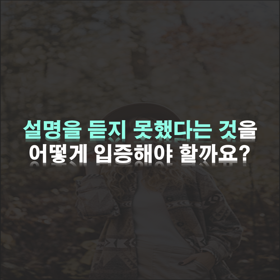 그러면 ‘내가 설명을 듣지 못했다는 것을 어떻게 입증해야 하는가’라는 숙제가 남습니다. 반대로 회사는 어떤 방법으로 설명했는지를 증명해야 하는 숙제가 남을 것입니다.