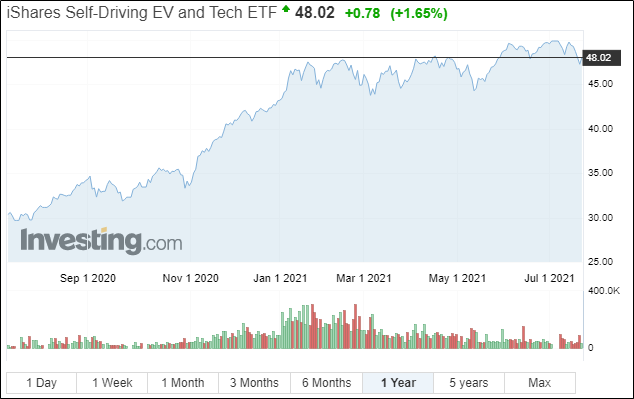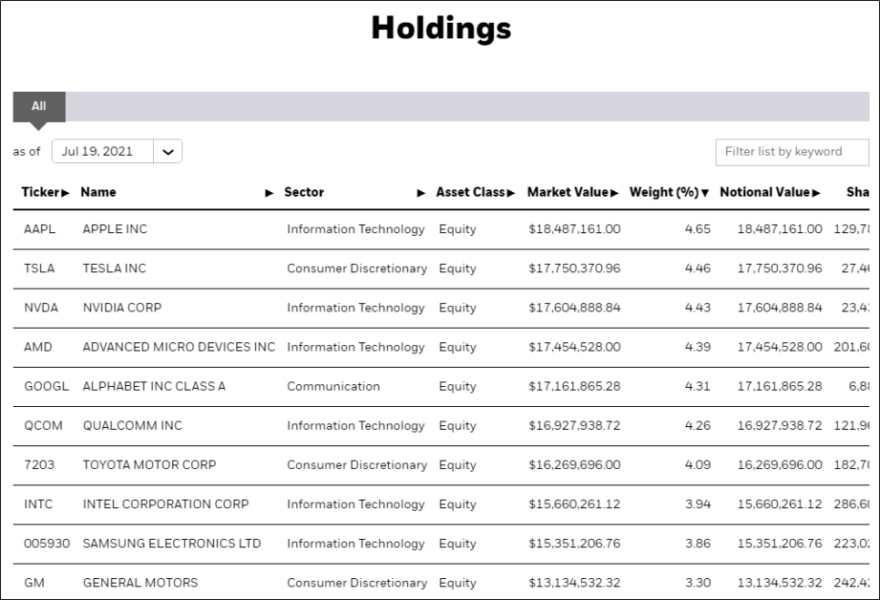 ETF 명칭에서 알 수 있듯이 자율주행과 전기차(EV) 관련 기업에 투자하고 있는 Fund입니다.운용 규모는 약 3억9,683만달러(4,500억원)입니다.