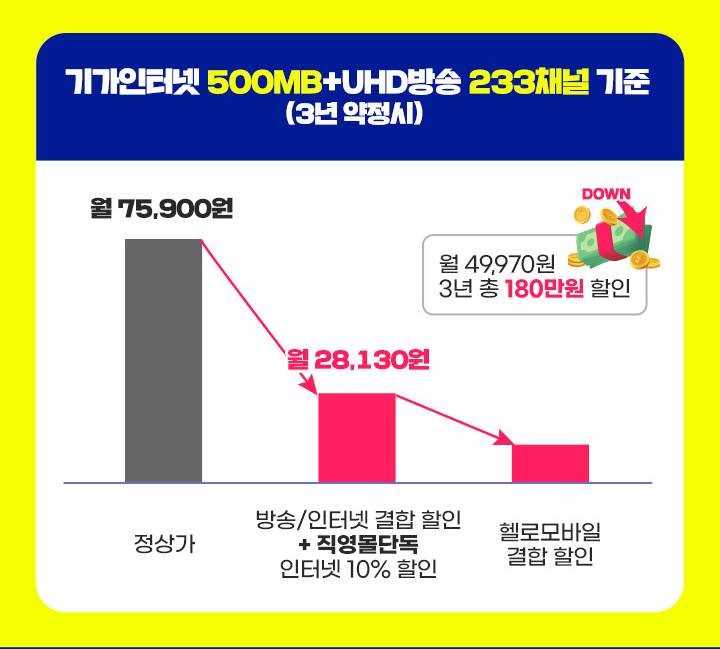 가장 중요한 현금 사은품도 있지만 더 중요한 것은 모바일 휴대 전화, 휴대 전화의 유무선 결합입니다.휴대 전화 통신 회사 모두 결합하고 맺을 수 있답니다.알뜰 폰 lg망 헬로 모바일 skt텔레콤 kt텔레콤 lg유 플러스 스마트 폰을 모두 맺을 수 있답니다.개인 결합, 그리고 가족 결합까지 연결할 수 있다는 점에서, 저는 일단 kt총 결합 할인을 묶어 놓았습니다.나중에 번호가 이동하면 추가로 가족 결합을 맺을 예정입니다.