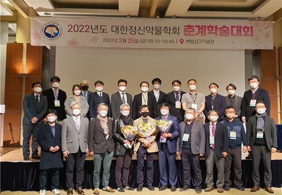 대한정신약물학회 춘계학술대회에서 이사장으로 재선임된 이상열 교수(앞줄 오른쪽에서 다섯 번째)가 기념촬영을 하고 있다. [사진=원광대병원 제공]이상열 원광대병원 정신건강의학과 교수가 25일 서울 백범 김구기념관에서 열린 대한정신약물학회 춘계학술대회에서 2020~2021년 회기에 이어 2022~2023년 회기이사장에 연임됐다.