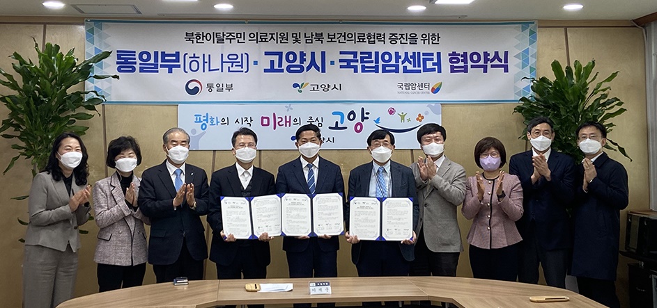 이번 협약은 국립암센터, 통일부 하나원, 고양시 3자 간 북한이탈주민 의료지원 및 남북보건의료협력 증진을 위한 유기적인 협력방안을 모색하기 위해 추진됐다.