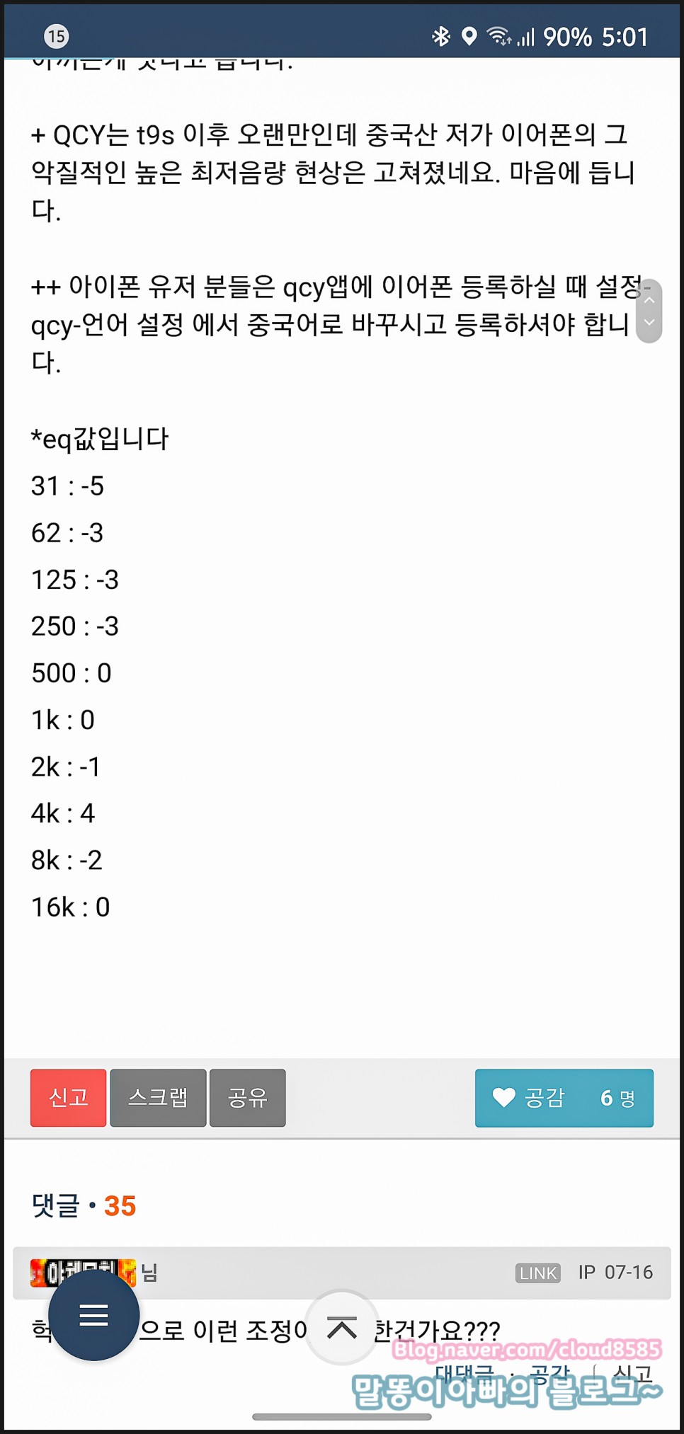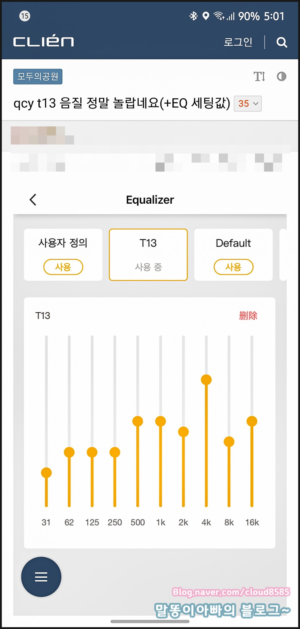 이 내용은 클린이라는 사이트에서 사용자분들이 공유해주신 EQ값이지만 다른 형태로 체험하고 싶으신 분들은 해 보셔도 좋을 것 같습니다.