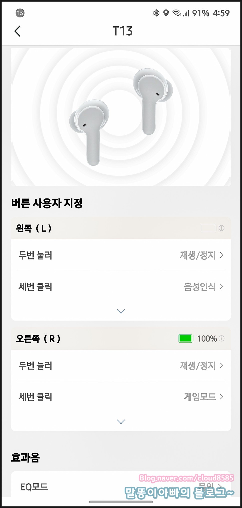 터치 횟수에 따른 동작 및 EQ 설정도 가능합니다.
