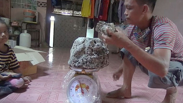 ↑ 사진 = 방콕 잭 제공 태국에서 ‘바다의 로또’가 폭발했습니다.2일 현지 시간으로 어부 아세레 푸아드 씨(24)는 아버지와 폭우 속에서도 낚시를 떠났습니다.그러나 어부 모녀는 고기를 한 마리도 잡지 못하고 풀이 죽어 집으로 돌아가려고 했습니다.현지 언론 방콕자크의 보도에 따르면 어부는 빈손으로 터벅터벅 발길을 돌렸으나 얕은 해변에 정체불명의 덩어리가 떠 있었다. TV에서 영영향을 본 적이 있어 혹시나 해서 집으로 가져왔다고 말했습니다