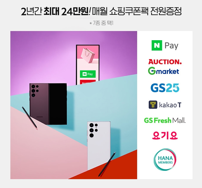 새 휴대폰을 개통할 때는 일단 요금제까지 포함해 최대 60만원 할인을 받는 것이 중요하지만 갤럭시S22 구매 혜택을 최대한 이용하고 싶다면 하나카드, LG유플러스필리카드에서 요금제 결제 시 최대 60만원 할인을 받을 수 있어 비용을 줄일 수 있습니다.