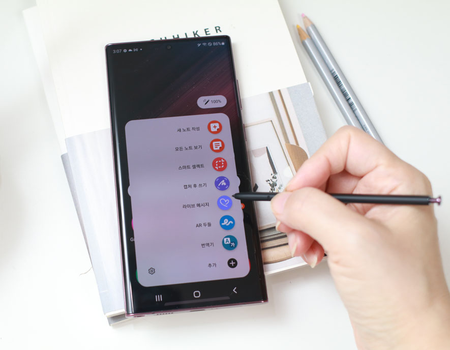 원격촬영, 라이브 메시지, 캡처 후 쓰기 등 S펜에서 활용한 다양한 기능도 사용할 수 있습니다.